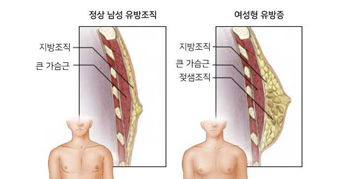 따라서 여성의 유방처럼 육안으로 유방이 커져 보이게 되는 경우를 말합니다.