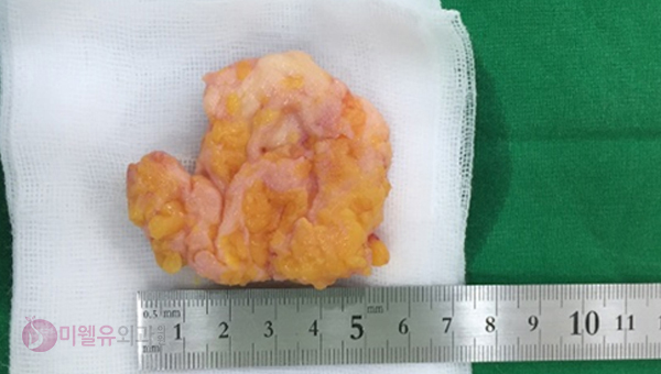 대부분의 경우 유방조직과 지방조직을 동반한 경우가 많아